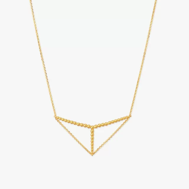 Timeless pieces with a unique Indian flair, reimagined with a technological uplift. Pieces like the Triangle Bead Gold Necklace showcase a subtle elegance that is perfect for those who love tradition with a modern edge.