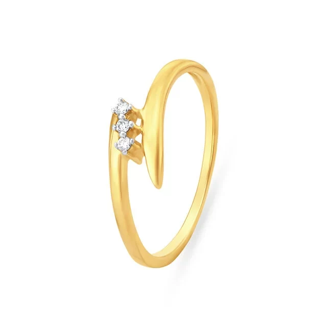 Three-stone setting symbolizes past, present, future. Three Stone Diamond Finger Ring balances three gems harmoniously.