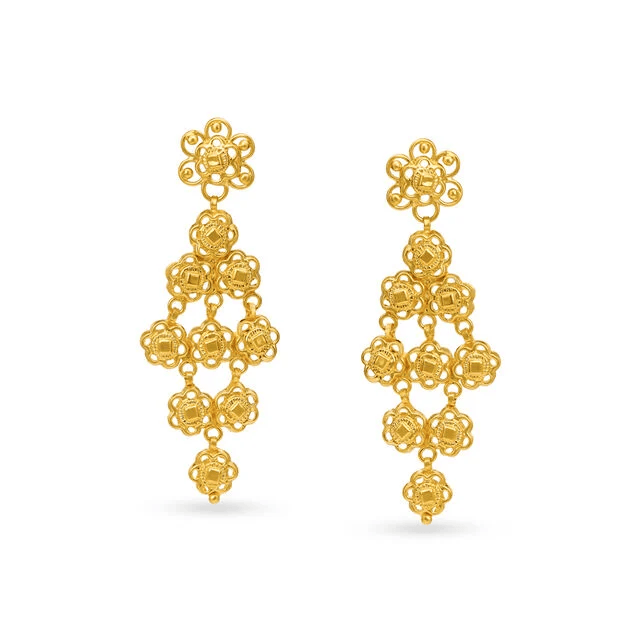 Honeycomb Bloom Gold Jhumka Earrings bring out the richness of maroon lehengas with their warm tones and elaborate design.