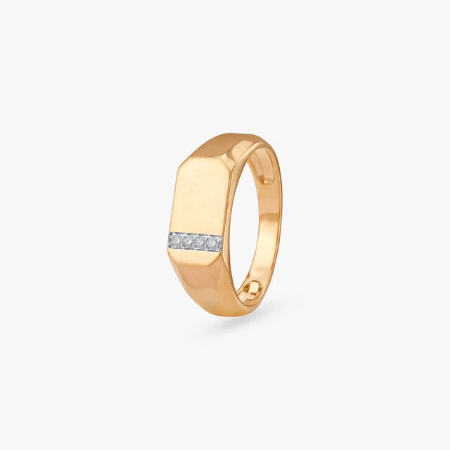 For an effortless, everyday style, pair your band ring with gold ear studs for men or a modern plain gold ring design for female.