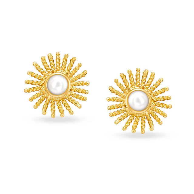 Among gemstone options, pearls stand out for their understated elegance. Light and versatile, pearl earrings elevate any look with minimal effort. For a classic yet refreshing choice, opt for these Radiant Sun Gold Stud Earrings with Pearl – a delicate accessory for enhancing daily ensembles.