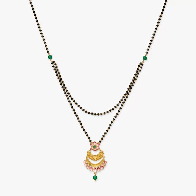 A marathi mangalsutra holds timeless significance as the ultimate symbol of marital love and protection, making it the perfect Gudi Padwa jewellery gold gift for wife this festive season. Crescent Bloom Gold Mangalsutra captures that essence beautifully with its delicate chains, traditional black beads, and gemstone accents that add just the right sparkle without overwhelming.