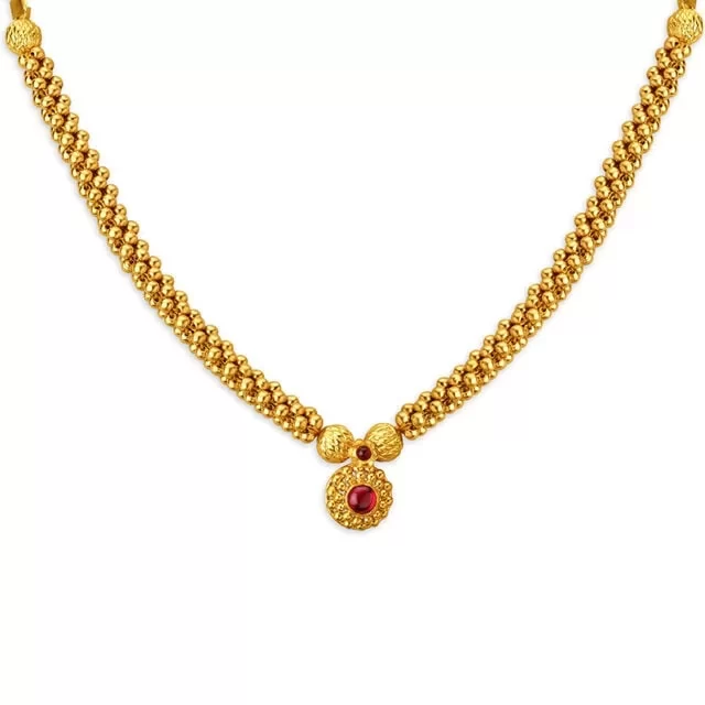 The Beautiful Marathi Vati Mangalsutra embodies marital devotion with its traditional vati pendant design. Perfect as a Gudi Padwa gold purchase, it transitions seamlessly from morning puja to evening celebrations.