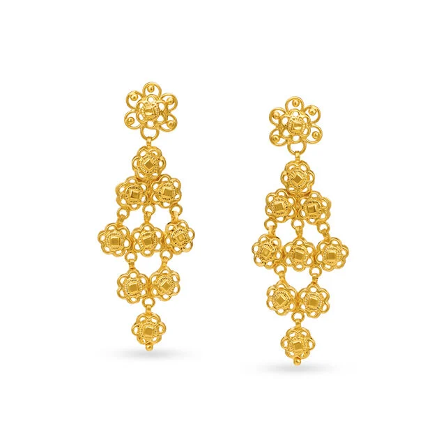 The Mehndi ceremony involves applying intricate henna designs to the bride’s hands and feet, symbolising love and prosperity. During this occasion, the bride and her family wear their best attire and jewellery including classic Gujarati earrings design like small nose pins and jhumkas. For this occasion, the bride can enhance her beauty with the exquisite Layered Floral Necklace Set from Tanishq, blending tradition with elegance.