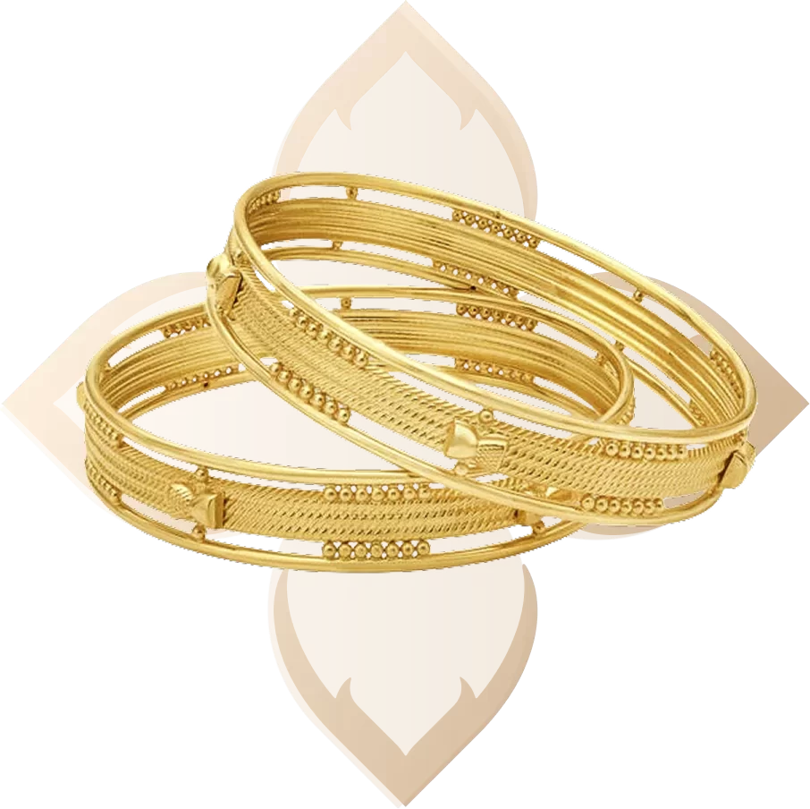 Stacked gold bangles define the bridal silhouette. They add rhythm and texture to the ensemble.