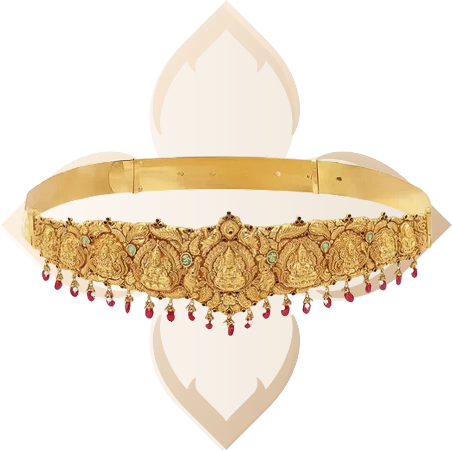 The waist belt enhances the Nauvari’s dhoti-style drape and accentuates posture. It’s essential in bridal styling.