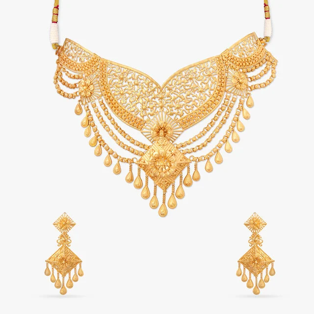 Start with a statement necklace, then layer complementary chains of varying lengths. Balance heavy pieces with lighter bangles or the delicate Pendant Set Gold New Design to create depth without overwhelm. Use Tanishq’s curated collections to mix textures and finishes gracefully.