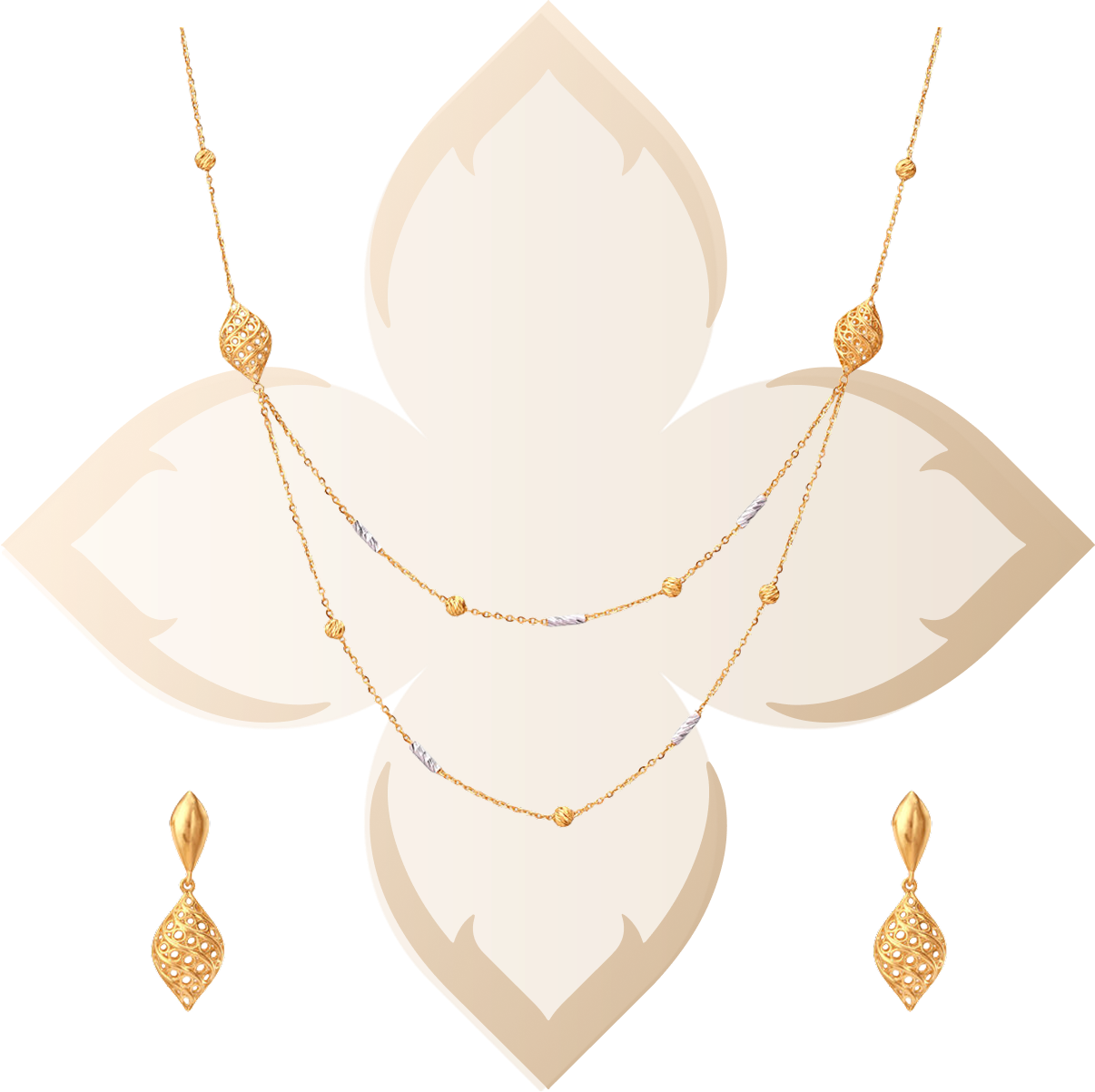 When tradition meets twinkle, handset stones elevate a classic silhouette for luminous evenings. This showstopper bridges heirloom vibes with modern polish—a truly enchanting gold and diamond necklace set to treasure.