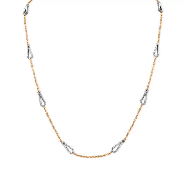 To choose your gold chain, you must be aware of your style. Choose a thin, delicate gold chain if you want sophisticated and attractive patterns. Select a straightforward pendant to go with it for a relaxed, chic, minimalist style. An eye-catching bigger gold chain will do wonders for a more outgoing person who likes to make a statement. Why not try it now if you can pull it off? The Contemporary Stone Studded Gold Chain stands out as an immensely charming option that offers versatile sophistication.