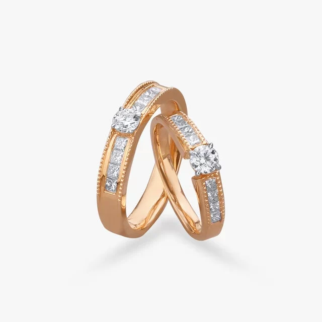 Whether you’re after a solitaire diamond ring that says forever, or a unique diamond rings that says just you, Tanishq offers range of diamond ring designs to match your story, your mood and your moment. Love’s Spark Diamond Couple Rings celebrate shared commitments beautifully.